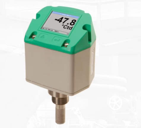 Details• Ideal for all types of compressed air dryers with different measuring ranges such as -80...+20°Ctd; -60...+30°Ctd; -20...+50°Ctd• Sensor element insensitive against condensation and water• Maximum pressure 500 bar (special version)• Long-term stable and drift-proof, thus optimized calibration intervals• Gas-independent measurement, also suitable for other non-corrosive gases• Fast response time, especially in case of moisture ingress• BSP- or NPT-Threads• Protection class IP 65• Analog output 4...20 mA and Modbus RTU (RS 485) interface, contact relay with limit value adjustable via keys (max. 60 VDC, 0.5A)• Optional: Modbus TCP (Ethernet), Modbus TCP PoE (Ethernet) or M-Bus interface• Measured values available in different units, pressure dew point [°Ctd], temperature [°C], rel. humidity [%rh], abs. humidity [g/m³], moisture content [g/kg], moisture content V/V [ppmV/V], water vapor partial pressure [hPa], atmospheric dew point [°Ctd.atm]• On-site sensor diagnostics with handheld device or CS Service Software -